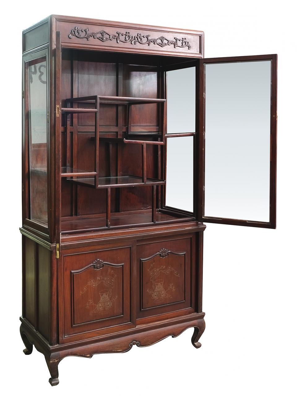 295 – Vitrina en madera de caoba con puertas en la parte inferior y acristalada por los tres costados. S. XX