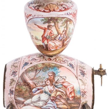 255 – Sopera en porcelana china con decoración oriental en tonos verdes y azules