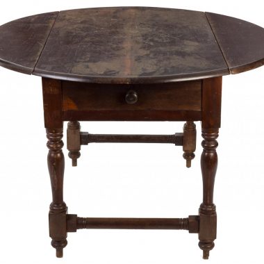 261 – Mesa inglesa de alas abatibles ovalada en caoba, con patas torneadas y cajón en cintura. S. XIX