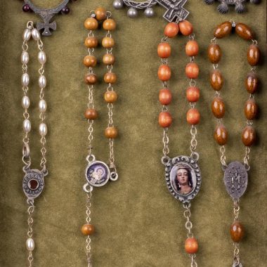 250 – Lote formado por cuatro rosarios de muñeca y tres rosarios anulares. S. XX